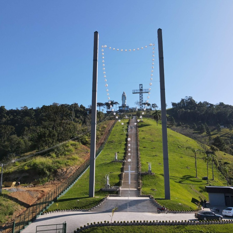 Ao iniciar sua peregrinação pela escadaria, pare sob o Maior Terço do Mundo, eleve sua prece e sinta a força da devoção mariana. O Complexo do Louvor e o Terço da Salvação esperam por você em Ituporanga, SC.